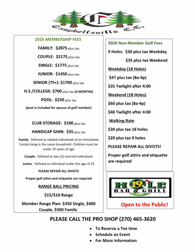 For more information on becoming a member of the Campbellsville Country Club, please fill out the contact form or contact us directly at 270.465.3620.